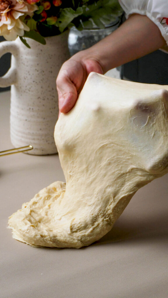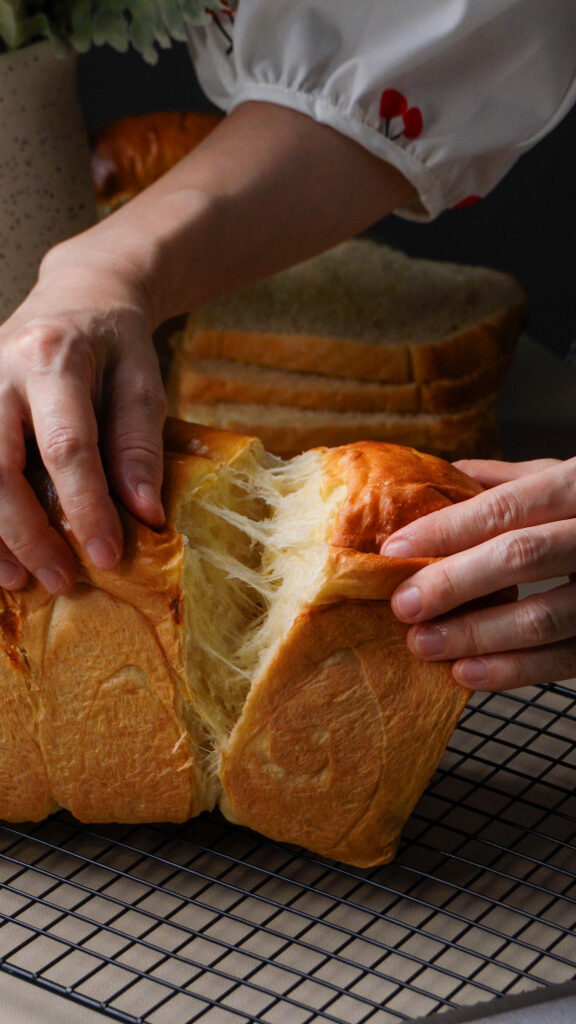 This recipe is my ultimate game-changer, and I have been repeatedly using it. It proves that you don’t need fancy equipment to achieve that perfect bread texture. The “Windowpane” Trick – the holy grail for bread bakers—that stretchy, thin membrane that promises an airy, soft loaf. The magic lies in a COLD REST that does all the hard work for you, developing the gluten slowly while you sleep, effortlessly. The result is an incredibly soft and fluffy loaf that makes you feel like a pro baker.